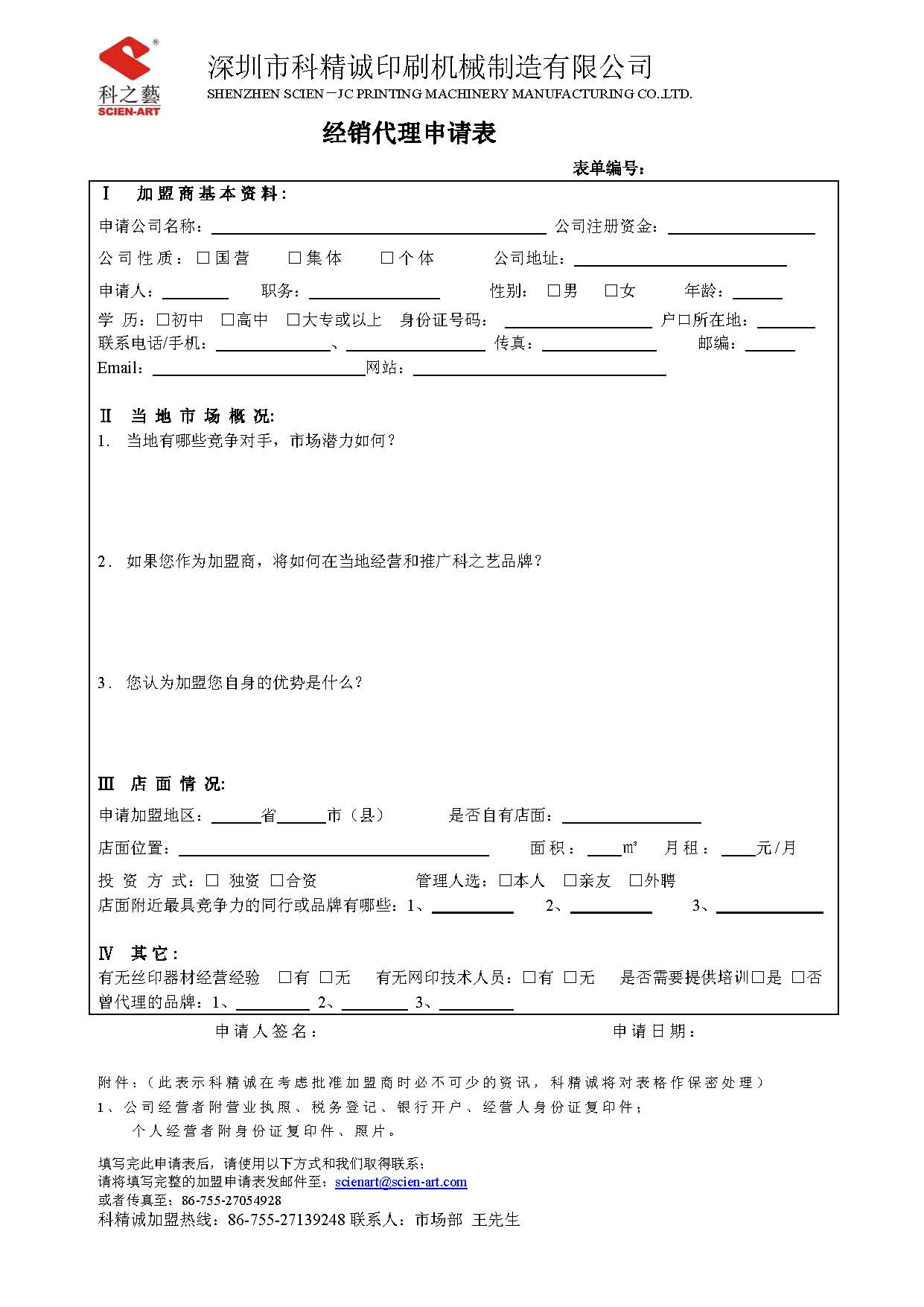 2. 加盟商需有一定的網印設備背景,具有獨立為客戶提供服務的能力。